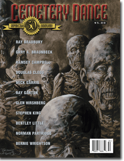 Check out what came in the mail yesterday – Cemetery Dance’s 50th issue! Yes, I am aware that this post is seven years late. Regardless, I’m still excited to have CD’s 50th Special Issue on my desk, filled with an interview with King and stories from Bradbury, Braunbeck, Campbell, Partridge, Little and more.
