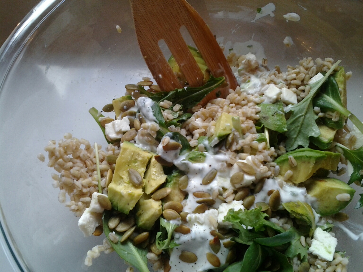 Barley Avocado Arugula SaladAt home, one of my side projects is starting a food blog (left photo: northwest barley salad with miso dressing). I love to cook, and this last year, I focused on increasing my raw food intake, so now I’m in the process of creating new and healthier recipes to some of my favorite dishes, without sacrificing taste of course. Best of all, I’m trying to make my recipes so easy to cook, a zombie could make them … or a ten-year-old child. As soon as I get pages, photos, and recipes into a functioning site, I’ll post links.